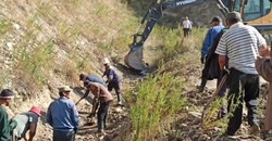 Тогуз-Тородо 450 гектар жерге суу жеткирген каналды ашар жолу менен казып жатышат. Сүрөт
